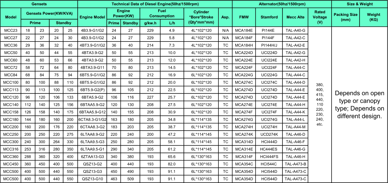 1 Cummins Engine Generator Main Specification